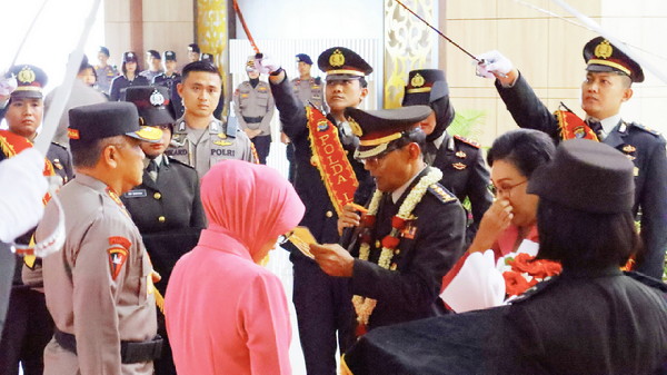 Dimana pelaksanaan acara pelepasan dengan tradisi pedang pora kepada Kombes Pol Yosef Budi Meidianto yang sudah memasuki purna bhakti ini berlangsung sangat khidmat dan penuh haru.