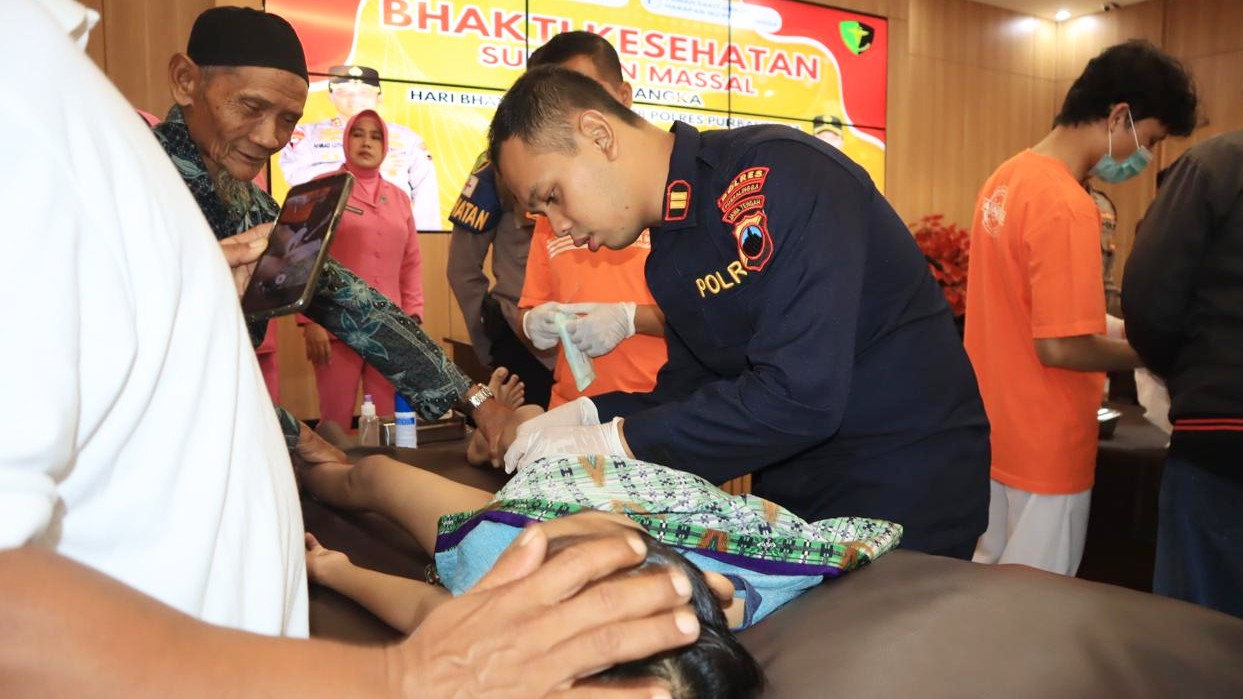 Polres Purbalingga, Polda Jateng —  Polres Purbalingga menggelar Bakti Kesehatan Hari Bhayangkara ke-78 tahun 2024. Kegiatan yang dilaksanakan berupa sunatan massal gratis yang digelar di Aula Wicaksana Laghawa Mapolres Purbalingga, Senin (24/6/2024).