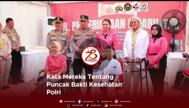 Jakarta — Polri menggelar kegiatan Puncak Bakti Kesehatan Polri di Lapangan Karangpawitan, Kab. Karawang, Jawa Barat, Rabu (26/6). Kegiatan ini dilaksanakan dalam rangka memperingati Hari Bhayangkara ke-78 dengan memberikan berbagai layanan kesehatan tanpa dipungut biaya atau gratis.