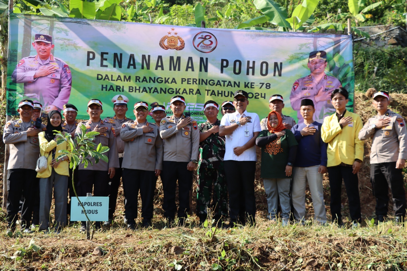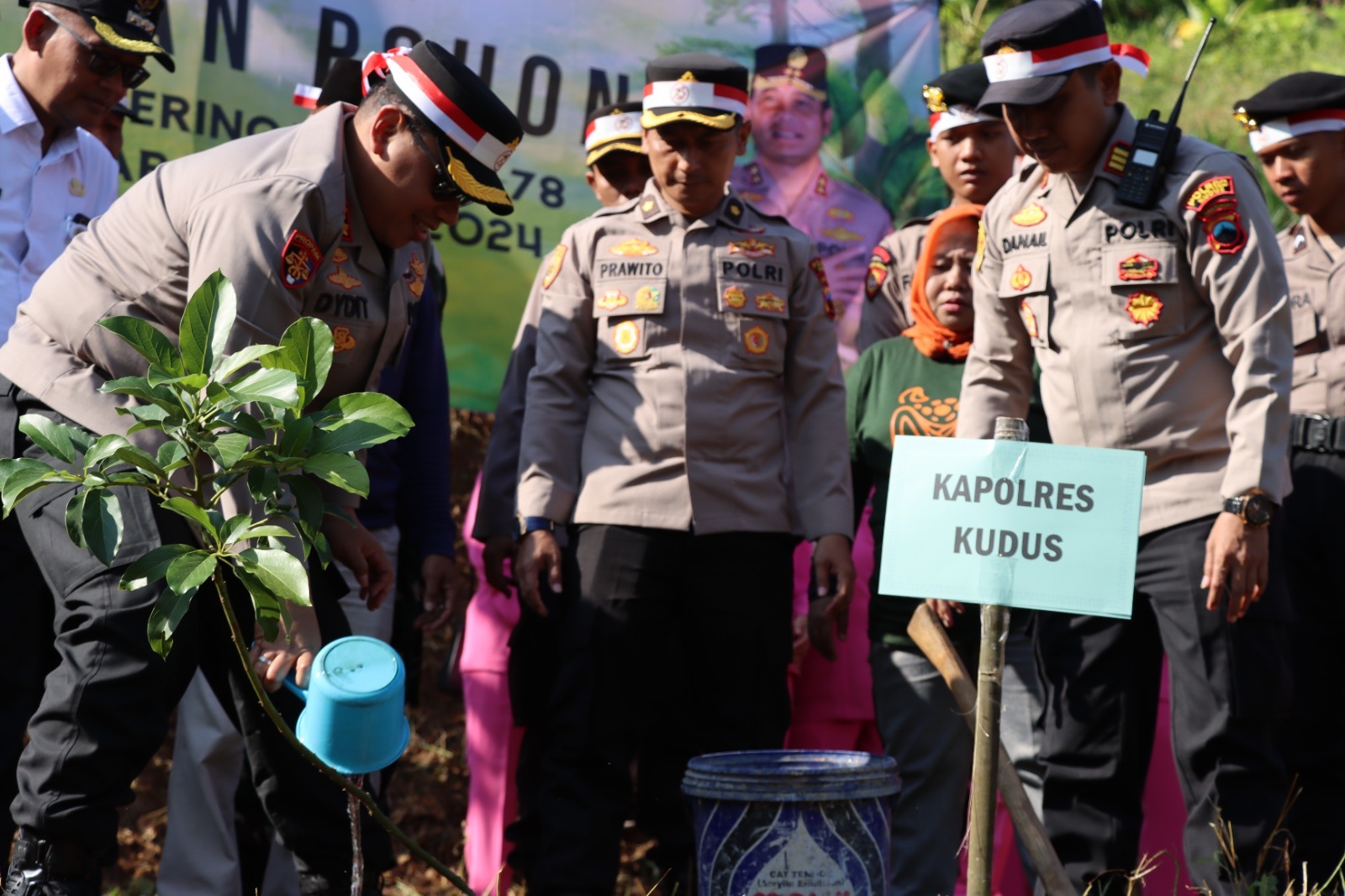 Kudus — Dalam rangka memperingati Hari Bhayangkara ke-78, Polres Kudus, Polda Jateng melaksanakan kegiatan penanaman pohon serentak di Bukit Ketileng yang berada di Desa Menawan, Kecamatan Gebog, Kudus, Kamis (27/6/2024).