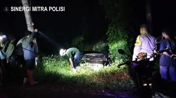 JALAN GELAP ARUS RAMAI ARAH WONOBODRO, MOBIL MASUK SUNGAI