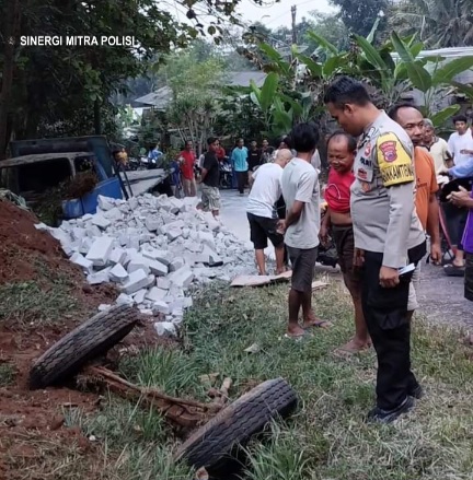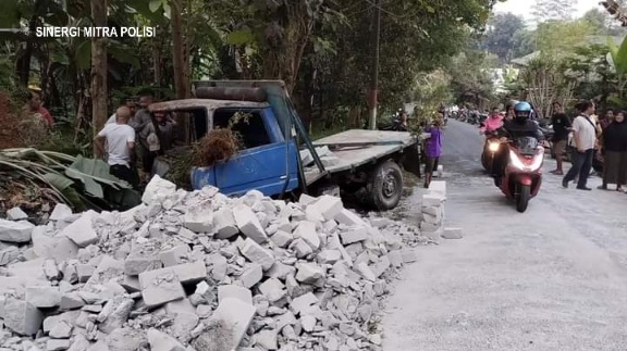 Alami Rem blong Truk meluncur Hantam Tebing Hingga Dua Roda Depan Lepas