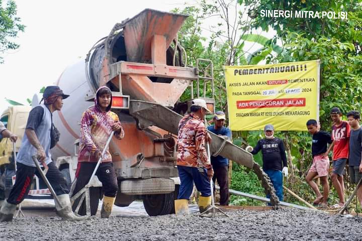Pekalongan ,– Warga Dukuh Mekar Agung RT. 02/RW. 08 Desa Kebonagung, Kecamatan Kajen, Kabupaten Pekalongan melakukan pengecoran jalan utama tahap 2 pada hari Sabtu, (20/7/2024) siang. Pengecoran jalan utama tersebut sampai saat ini masih menggunakan dana swadaya warga.