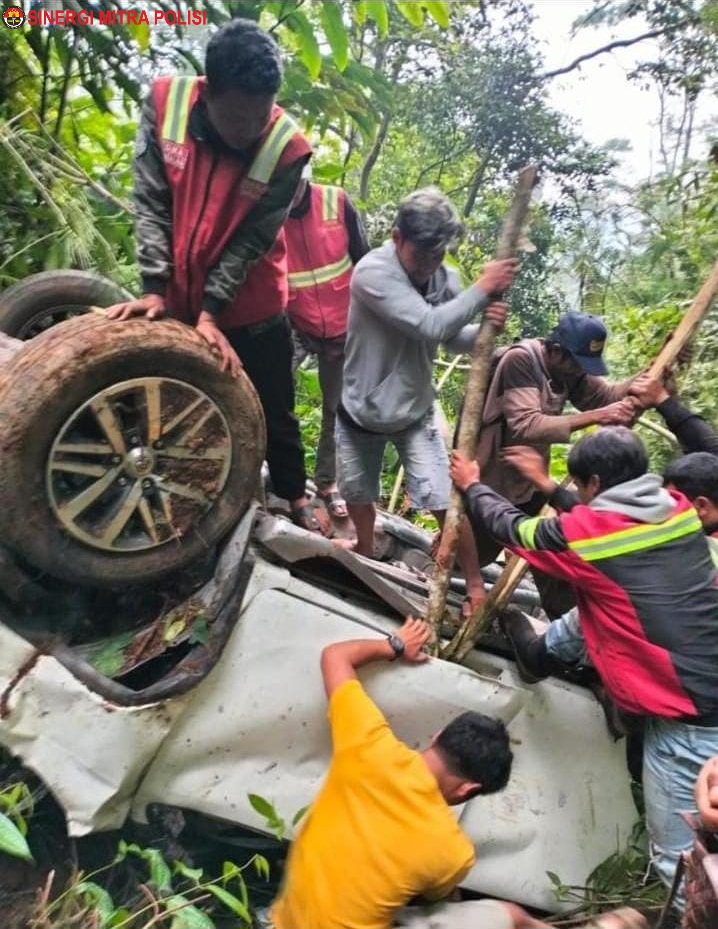 Sebuah Laka Tragis Mobil Fortuner Masuk Jurang Sedalam 100 Meter, 4 Orang Meningga Dunia