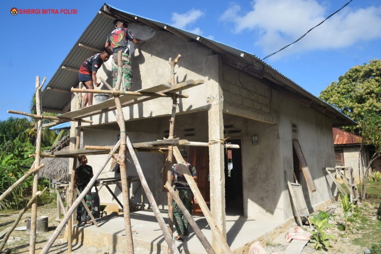 Satu diantara rehab Rumah Tidak Layak Huni (RTLH) dalam program kegiatan TMMD 121 Kodim 1511/Pulau Moa di rumah Bapak Welem Serandoma di Desa Tutuwaru Kecamatan Pulau Letti Kabupaten Maluku Barat Daya.