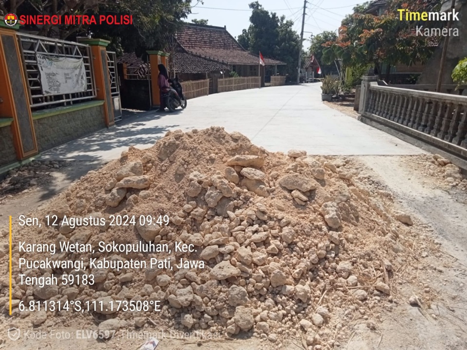 sibaygroupkomunika/ PATI — Pekerjaan Rabat Beton di Desa Sukopuluhan, Kecamatan Pucakwangi, belum lama selesai dikerjakan. Baru beberapa Minggu, Kini tampak sudah banyak yang retak dan sudah di tambal dengan aspal.
