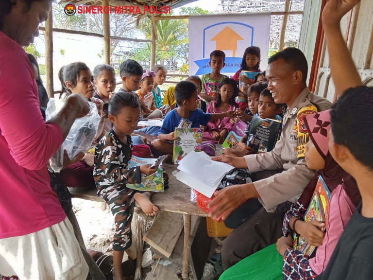 sibaygroupkomunika/ POLSEK MANIPA,- Untuk meningkatkan literasi pelajar dan masyarakat, Polisi Sektor (Polsek) Manipa, Polsek Seram Bagian Barat (SBB), terus memberikan bagi anak-anak untuk meningkatkan kegemaran membaca.
