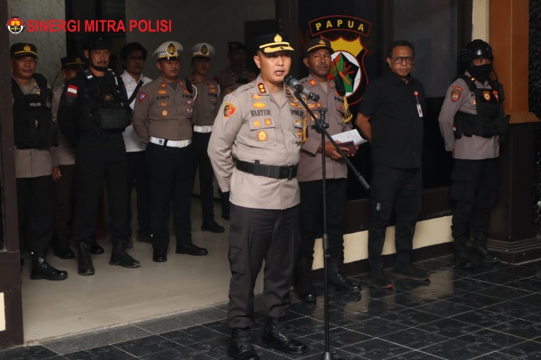 Apel Gabungan dipimpin oleh Kapolres Nabire AKBP Wahyudi Satriyo Bintoro, S.H, S.I.K., M.Si. dan dihadiri oleh sejumlah pejabat penting, termasuk Kepala Kesbangpol Papua Tengah Drs. Thephilus Lukas Ayomi, Wakapolres Nabire KOMPOL Sofian C.A Samakori dan Kabag Ops Polres Nabire AKP Menase Sayori, S.E. Selain itu, personel dari Brimob Yon C Pelopor Nabire, Kodim 1705/Nabire, serta Satpol PP Provinsi Papua Tengah dan Kabupaten Nabire juga turut hadir.