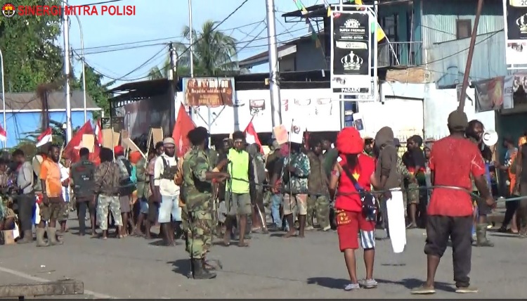 “Aksi yang berlangsung di Jalan Poros Kalisemen dipimpin oleh Marselus Goo, dengan sekitar 100 orang peserta yang membawa atribut berupa bendera KNPB dan bendera Bintang Kejora, serta lima pamflet yang berisi tuntutan dan seruan,” ungkap Kapolres.