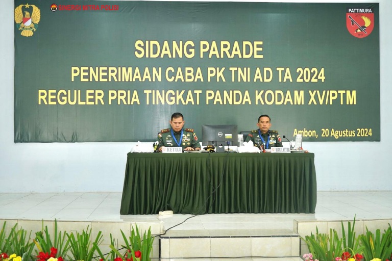 Sidang Parade ini, diikuti 635 calon Bintara PK TNI AD TA. 2024 Sumber Reguler Tingkat Panitia Daerah (Panda) Ambon. Bagi mereka yang dinyatakan lulus, selanjutnya akan mengikuti tahap pemeriksaan tingkat pusat, yang akan dilaksankan di Rindam XV/Pattimura.
