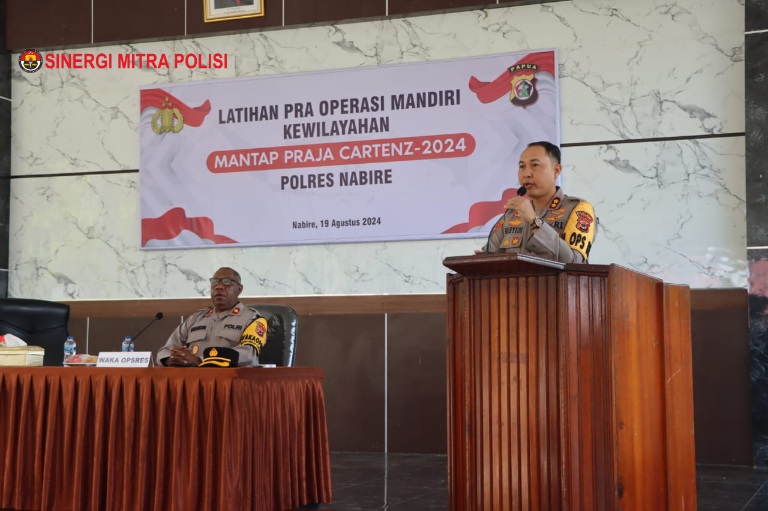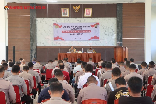 sibaygroupkomunika/ Nabire ~ Di Aula Wicaksana Lagawa Polres Nabire laksanakan Latihan Pra Operasi Mandiri Kewilayahan Mantap Praja Cartenz – 2024, Rabu (21/08/2024).