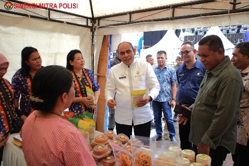 Setelah menyaksikan Lomba Senam Kreasi, Plh Sekda melakukan peninjauan Stan-Stan UMKM, untuk melihat produk olahan yang dijual disana.