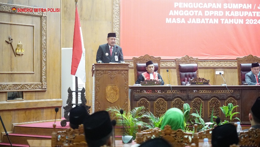 Sementara itu, Pj Bupati Pati Sujarwanto Dwiatmoko dalam pidatonya membacakan sambutan Menteri Dalam Negeri pada acara pengucapan sumpah/janji Anggota DPRD Kabupaten Pati masa jabatan tahun 2024-2029.