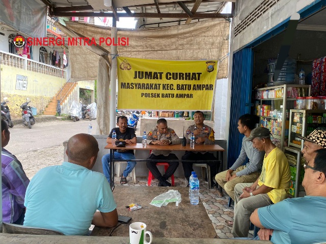 Program ‘Jumat Curhat’ yang digagas Mabes POLRI ini diperuntukkan bagi Polda,Polres,hingga Polsek, supaya kepolisian menerima/menampung curhatan masyarakat terkait situasi Kamtibmas di wilayah kec.batu ampar dan tugas” anggota polri dilapangan termasuk untuk memberi saran dan masukan atas hal yang dirasakan lingkungan masyarakat.
