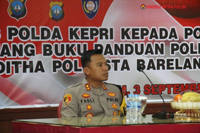 sibaygroupkomunika/ Batam ,- Personil Polresta Barelang menerima Arahan Dirbinmas Polda Kepri Kombes Pol Wawan Kurniawan, S.H., S.I.K., M.Si. terkait Buku Panduan Tugas Polisi RW bertempat di Aula Anindhita Mapolresta Barelang. Selasa (03/09/2024)