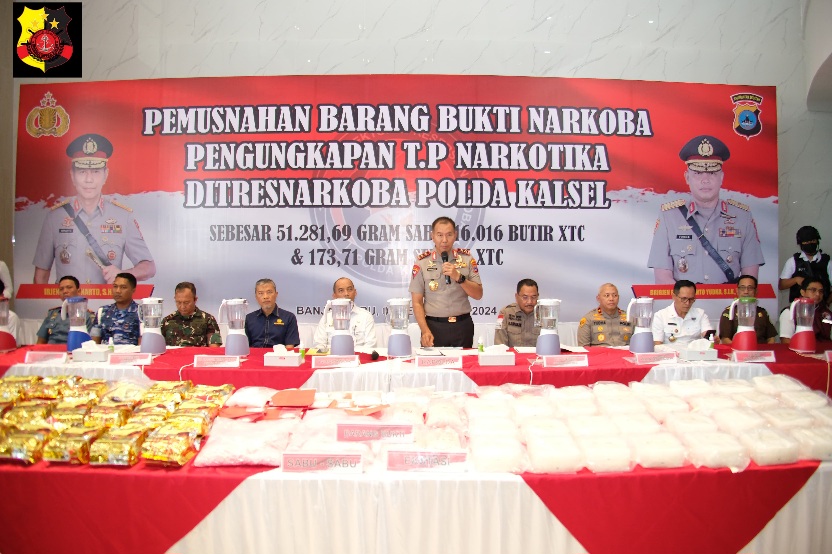 Kepolisian Daerah Kalimantan Selatan (Polda Kalsel) kembali melakukan pemusnahan barang bukti narkotika jenis Sabu seberat 51,28 kg atau 51.281,69 gram beserta XTC sebanyak 16.016 butir, dan Serbuk XTC 173,74 gram dari 16 laporan polisi (LP).