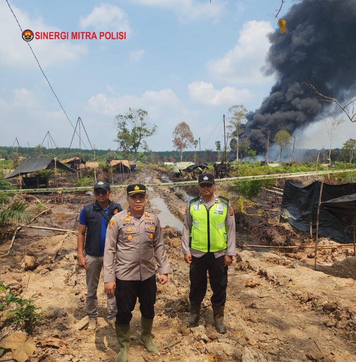 Kapolsek mengamankan tiga pelaku pemeras minyak didekat semburan api. Ketiga pelaku DI, SU dan AJ mengaku sebagai buruh yang sedang dipekerjakan untuk memasang pagar seng pembatas sekeliling pinggiran sungai Dawas di areal rawa lahan illegal drilling sumur yang terbakar.