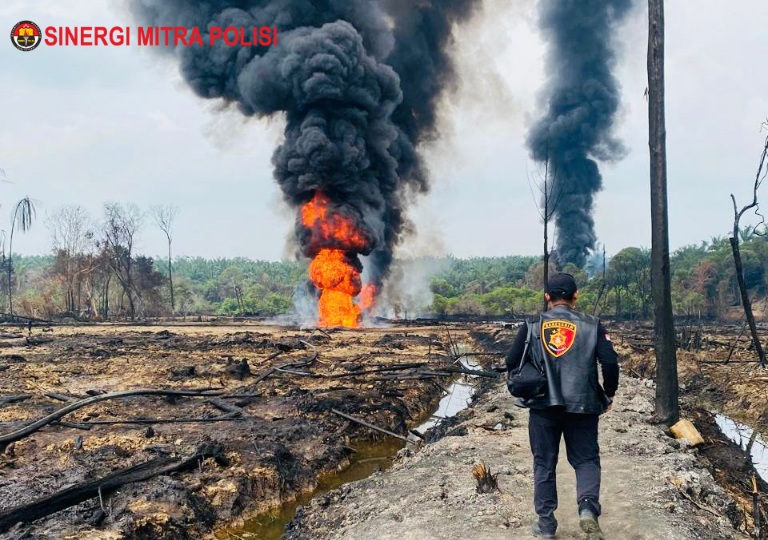 Kapolsek Sungai Lilin Polres Musi Banyuasin Iptu Jon Kenedi yang menerima informasi tersebut mengajak serta Kanit Intelkam dan anggota pos penyekatan langsung meluncur kelokasi, mendapati adanya tiga lubang kebocoran pada posisi tengah antara kedua titik api, sehingga menyemburkan minyak mentah. Masyarakat mengabaikan keselamatan dan rusaknya lingkungan, berbondong bondong mengumpulkan tumoahan minyak dengan cara memeras dan menampungnya.