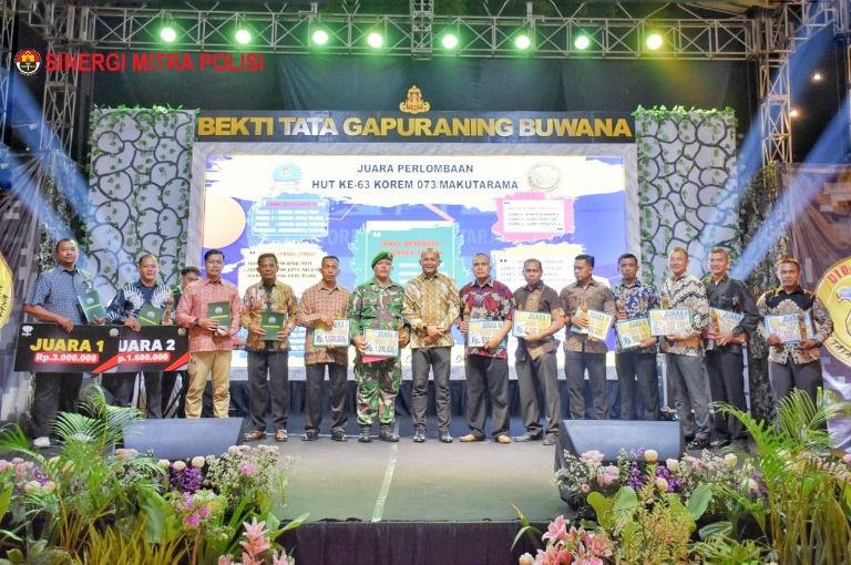 Dalam acara syukuran yang dihadiri para komandan Kodim jajaran, Danyonif 410/Alugoro serta para Komandan atau Kepala Satdisjan jajaran Korem 073/Makutarama tersebut diserahkan piala kepada juara lomba yang digelar dalam rangka HUT ke-63 Korem 073/Makutarama.