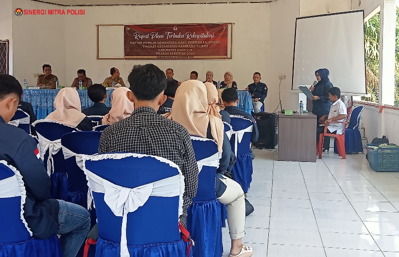 sibaygroupkomunika/ Muara Kuang,- Pada Selasa, 10 September 2024, Polsek Muara Kuang turut serta menghadiri acara Rapat Pleno Terbuka Rekapitulasi Daftar Pemilih Sementara Hasil Perbaikan (DPSHP) untuk Pemilihan Serentak Tahun 2024. Acara yang digelar di Balai Kantor Kecamatan Rambang Kuang ini dimulai pukul 10.00 WIB dan dihadiri oleh berbagai elemen penyelenggara serta aparat terkait.