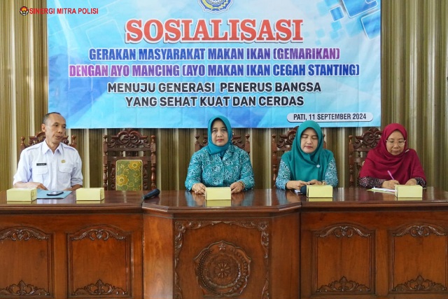 sibaygroupkomunika/ PATI,- Pj Ketua Tim Penggerak (TP) PKK Kabupaten Pati, Monica Sujarwanto, menyerukan gerakan “Ayo Mancing !”. Hal itu disampaikan Monica di acara Sosialisasi Gerakan Masyarakat Makan Ikan (Gemarikan) dengan tema “AYO MANCING (Ayo Makan Ikan Cegah Stunting)” di Aula PKK Kabupaten Pati, Rabu (11/9).