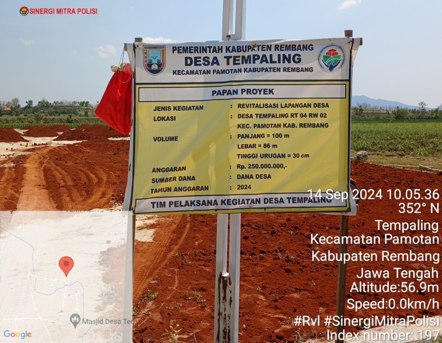 Serta temuan dilokasi proyek, di papan proyek tertulis pekerjaan Revitalisasi Lapangan Desa dengan Anggaran Rp. 250.000.000. yang dikerjakan sendiri oleh Kepala Desa Tempaling.