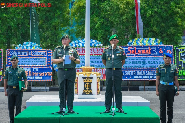 Kemudian, acara dilanjutkan dengan pelaksanaan apel bersama, yang diikuti oleh seluruh prajurit dan PNS Kodam. Dalam kesempatan ini, mantan Pangdam Mayjen TNI Syafrial, PSC., M.Tr.(Han)., mengucapkan terima kasih atas dukungan seluruh prajurit dan PNS selama Ia menjabat sebagai Pangdam XV/Pattimura, dan mohon doa restu untuk melanjutkan tugas di Satuan baru sebagai Kas Kostrad.