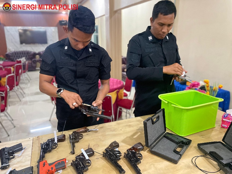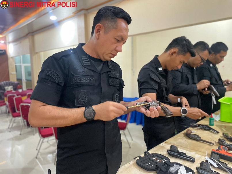 PASTIKAN SENJATA API DALAM KEADAAN BAIK, KEPALA KESATUAN PENGAMANAN RUTAN KELAS I PALEMBANG LAKUKAN PERAWATAN DAN PEMELIHARAAN SENJATA API