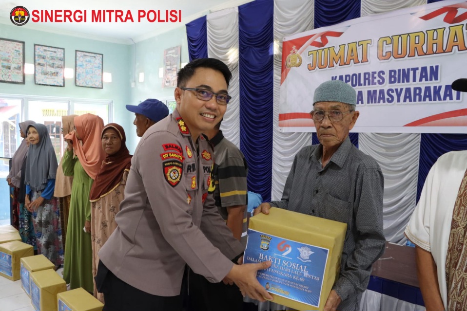 Polres Bintan melaksanakan Jumat Curhat di Aula Gedung Serba Guna Abdul Rajak Hasan Desa Pangkil Kecamatan Teluk Bintan yang dipimpin langsung oleh Kapolres Bintan AKBP Riky Iswoyo, S.I.K., M.M. pada pukul 09.00 WIB, Jumat (11/10/2024).