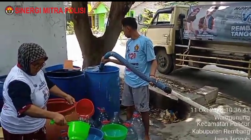“Hari ini kita bagikan air bersih di tiga titik dalam wilayah Kecamatan Lasem dan Pamotan. Pendistribusian air bersih ini merupakan bentuk simpati kami Timses dan Calon Bupati kita kepada Masyarakat,” tandasnya.