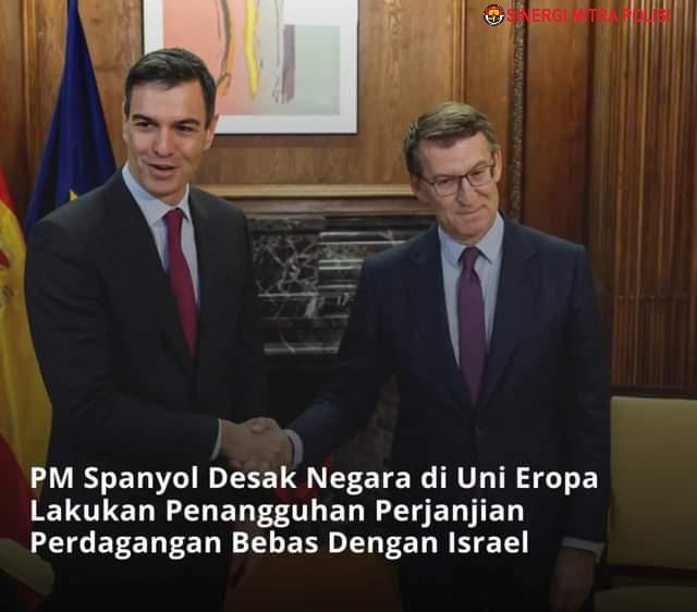 Internasional,- Perdana Menteri Spanyol Pedro Sanchez pada tanggal 14 Oktober mendesak anggota Uni Eropa lainnya untuk menangguhkan atau menunda perjanjian perdagangan bebas dengan Israhell sebagai tanggapan atas kejahatan perangnya di G*za dan Leb*non.
