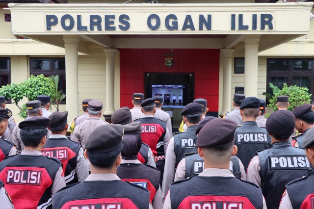 Kapolres Ogan Ilir Beserta PJU Dan Personil Polres Ikuti Upacara Pemberian PIN Emas oleh Kapolda Sumsel Secara Virtual