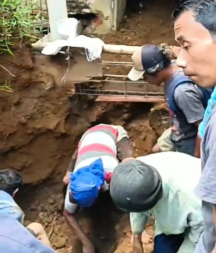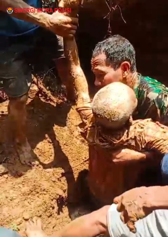 Melihat si kakek tertimbun istrinya pun histeris menangis, kebetulan di lokasi ada pak sambari beserta istrinya yang kebetulan lagi buat pondasi rumahnya yang letaknya bersebelahan dengan tkp tersebut,ikut panik langsung teriak minta tolong pada para tetangga, ada pula yg langsung diumumkan lewat pengeras suara dimasjid , sehingga para tetangga pada berdatangan langsung menggali timbunan tanah dan batu tersebut secara manual selama penggalian tanah tersebut sekitar 25 menit ,kakek taib berhasil di angkat dengan kondisi lemas tak sadarkan diri, dan langsung di bawa dengan ambulan desa kepuskemas terdekat tapi, nyawa kakek taib tidak bisa terselamatkan. Menurut pak sambari yang berada di lokasi, sudah memperingatkan untuk jangan masuk kedalam karna takut dan was was longsor, selang beberapa menit kejadian itupun terjadi.