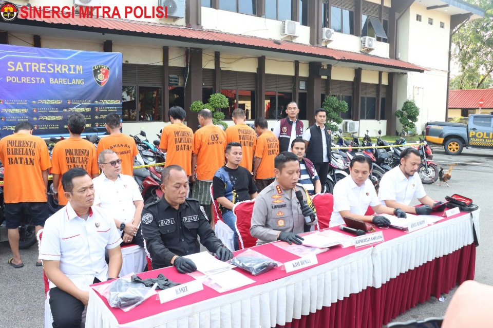 Batam,sibaygroupkomunika.com — Polresta Barelang, yang dipimpin oleh Kapolresta Kombes Pol H. Ompusunggu, SIK, M.Si, menggelar konferensi pers pengungkapan kasus perjudian jenis sabung ayam dan judi dadu goncang. Yang didampingi oleh Kasat Reskrim Polresta Barelang AKP Debby Tri Andrestian, SIK, MH, dan Kasihumas Polresta Barelang Iptu Budi Santosa, S.H, bertempat di Lapangan Apel Polresta Barelang pada Kamis (5/11/2024).