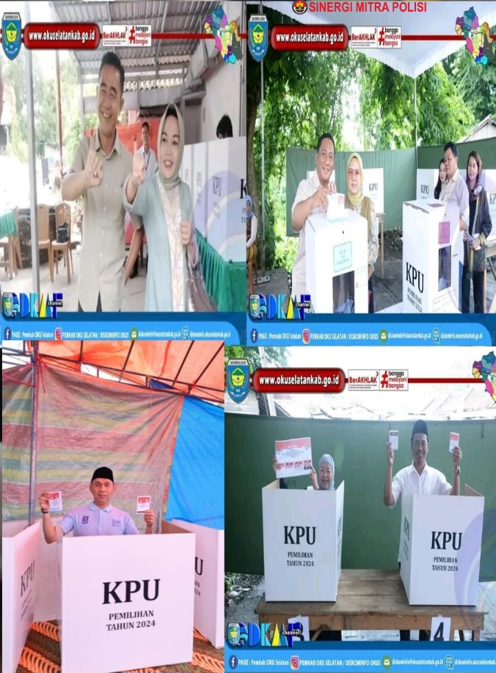 Empat Pasangan Calon Bupati dan Wakil Bupati OKU Selatan telah melaksanakan pencoblosan Pemilukada 2024 di masing-masing lokasi TPS hari ini. Empat Pasangan Calon menyalurkan hak pilihnya, diantaranya Paslon 01 Hengky Irawan melakukan Pencoblosan di TPS 02 Kelurahan Batu Belang Jaya Kecamatan Muaradua, sedangkan Calon Wakil Bupati Alkadri melakukan Pecoblosan di Kota Palembang.