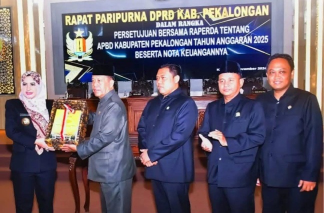 Persetujuan itu ditandai dengan penandatanganan bersama antara pihak Eksekutif dan Legislatif pada Rapat Paripurna yang dipimpin langsung oleh Ketua DPRD Kabupaten Pekalongan Drs. H. Abdul Munir, Jumat 29 November 2024 di Ruang Rapat Paripurna DPRD Kabupaten Pekalongan.