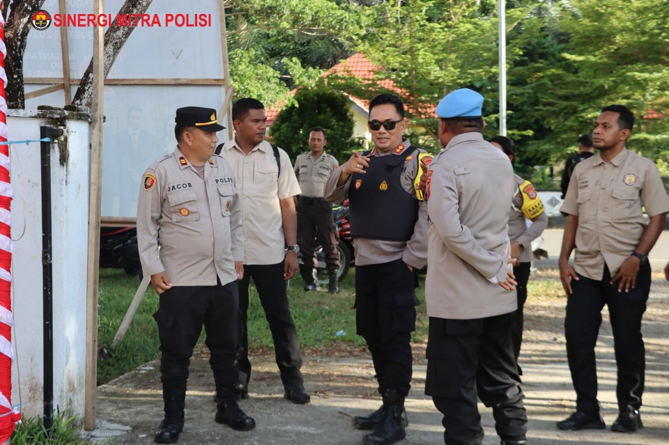 Pelaksanaan rapat pleno tingkat Kabupaten pada Pemilihan Kepala Daerah (Pilkada) serentak tahun 2024, Kapolres Seram Bagian Barat (SBB) AKBP Dennie Andreas Dharmawan, S.I.K., melakukan monitoring kesiapan pengamanan di Kantor Komisi Pemilihan Umum (KPU) Kabupaten Seram Bagian Barat. Selasa (3/12/2024).