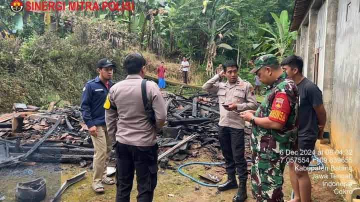 BATANG, SINEGI MITRA POLISI —  rumah ludes setelah alami kebakaran, pada hari ini, Jumat, 06 Desember 2024, sekira pukul 03.30 Wib, di dukuh Bendo bungkus RT 04/02, desa Cokro, kec.Blado, kab.Batang.