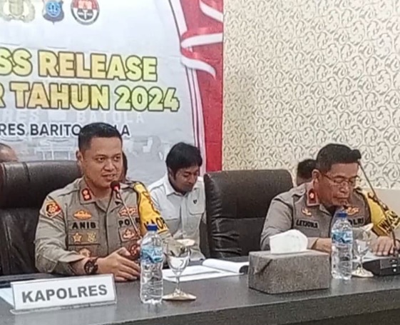 Marabahan, sibaygroupkomunika.com – Polres Barito Kuala (Batola) menggelar acara Press Release Akhir Tahun 2024 yang dipimpin langsung oleh Kapolres Batola, AKBP Anib Bastian, S.I.K., M.H., di Aula Rupatama Polres Batola pada Senin (30/12/2024).