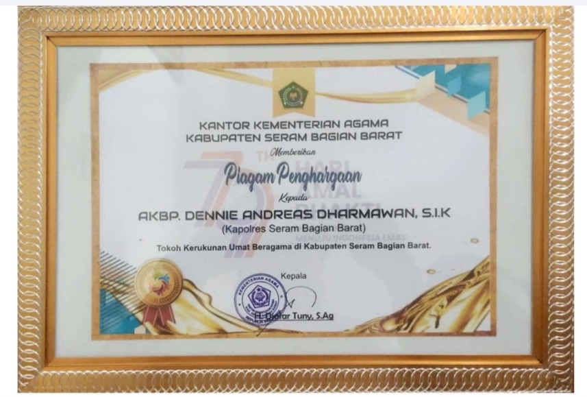 “Walau demikian kami mengucapakan terima kasih kepada Kementerian Agama SBB, atas penghargaan yang diberikan kepada kami,”ujar Kapolres.