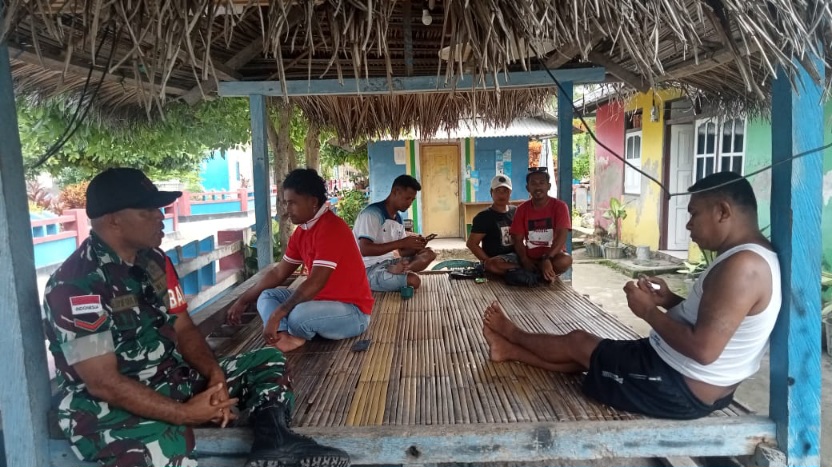 Maluku — Babinsa Koramil 1511-02/Marsela Kopda jefri Refualu melaksanakan kegiatan komunikasi sosial (Komsos) Bersama warga bertempat di Rumah kepala Desa,