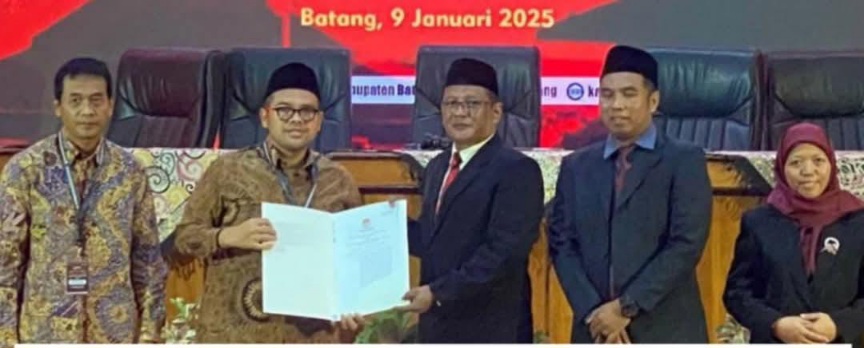 Ketua KPU Batang Susanto Waluyo mengatakan, bahwa hari ini resmi tetapkan pasangan Faiz Kurniawan-Suyono menjadi Bupati dan Wakil Bupati Batang periode 2025-2030.