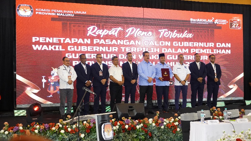 Penetapan pasangan gubernur dan wakil gubernur Maluku terpilih ini dilaksanakan di auditorium Natsepa Hotel, Suli, Kecamatan Salahutu, Kabupaten Maluku Tengah, Kamis malam (9/1/2025).