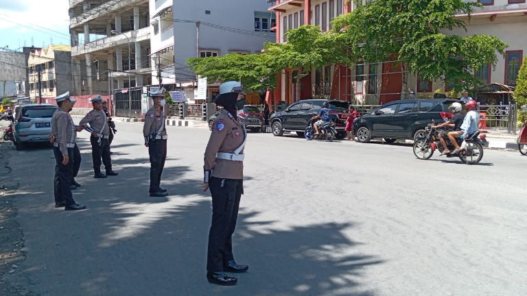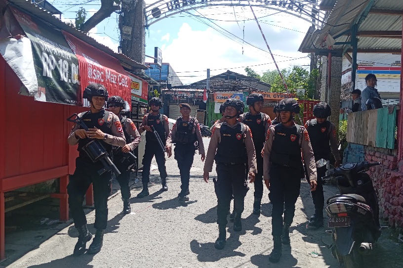 “Patroli jalan kaki juga dilakukan dengan rute Gereja Silo, Jalan Dr. Soetomo, Jalan Baru, dan Jalan AM Sangaji,” kata Kombes Areis.
