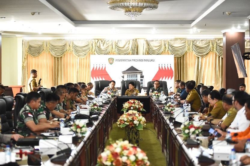 POLDAMALUKU — Kepala Kepolisian Daerah Maluku Irjen Pol. Drs. Eddy Sumitro Tambunan M.Si memimpin rapat koordinasi pengamanan (rakorpam) kunjungan Wakil Presiden RI, Gibran Rakabuming Raka dan Ibu Selfi Rakabuming di Kota Ambon.
