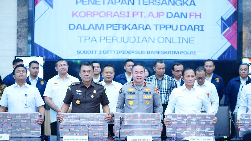 Jakarta — Direktorat Tindak Pidana Ekonomi Khusus (Dirtipideksus) Bareskrim Polri menetapkan korporasi PT AJP dan seorang individu berinisial FH sebagai tersangka dalam kasus Tindak Pidana Pencucian Uang (TPPU) yang berasal dari tindak pidana perjudian online. Penyidik juga berhasil menyita uang senilai Rp 103,27 miliar yang tersebar di 15 rekening bank.