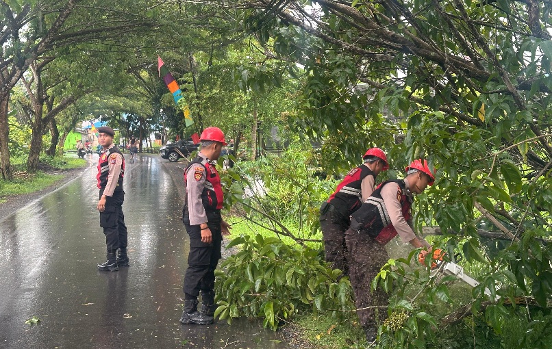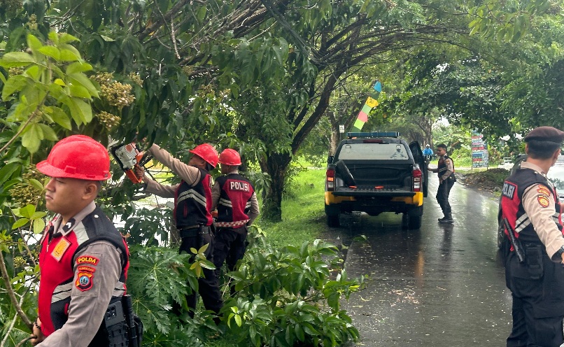 Kapolres Batola AKBP ANIB BASTIAN, S.I.K., M.H, melalui Kasi Humas Iptu Marum mengatakan, telah mengerahkan personil dari Sat Samapta untuk melakukan pembersihan pohon tumbang yang menghalagi pengguna jalan.