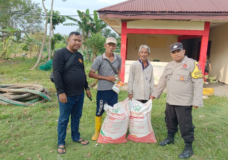Kapolsek Meral Polres Karimun Serahkan Bantuan Pupuk Dan Obat- Obatan Pertanian Kepada Kelompok Tani, Guna Dukung Percepatan Program Ketahanan Pangan