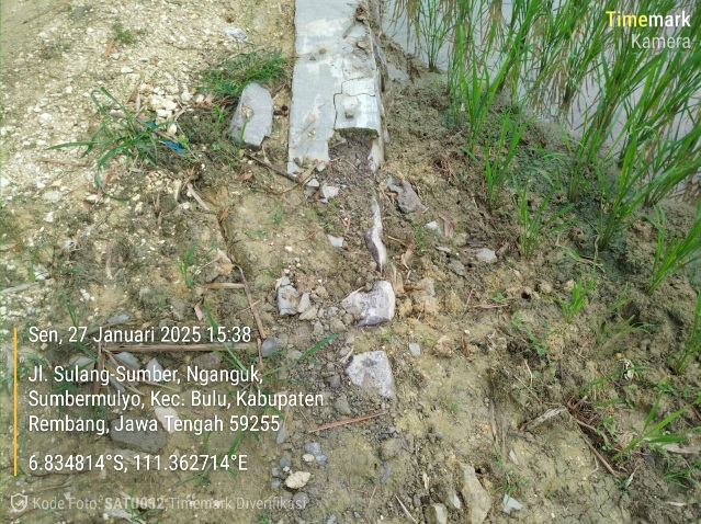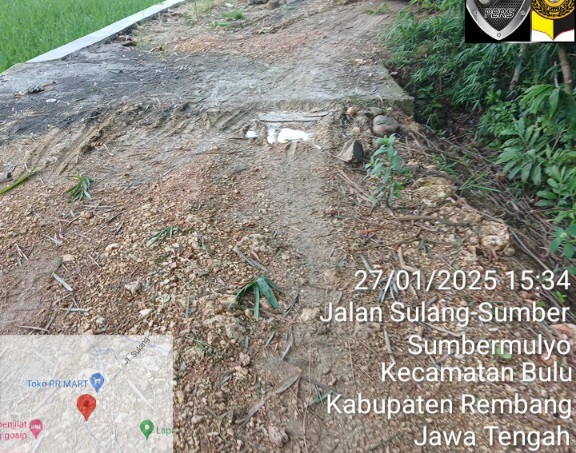 Sumbermulyo, Rembang, Jawa Tengah — Proyek Jalan Usaha Tani di Desa Sumbermulyo, Kecamatan Bulu, Kabupaten Rembang, Jawa Tengah diduga di kerjakan asal jadi, karena bentuk dan kihatan amburadul.