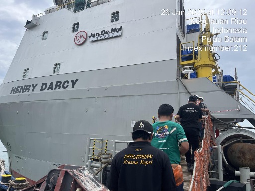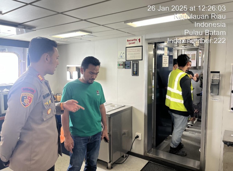 Batam,sibaygroupkomunika.com Polsek Batu Aji, didampingi Unit Inafis Polresta Barelang, KSOP Khusus Batam, dan Dinas Karantina, melakukan olah Tempat Kejadian Perkara (TKP) serta evakuasi terhadap jenazah seorang warga negara asing (WNA) yang diduga melakukan bunuh diri di dalam Kapal Kargo Hendry Darcy. Kapal tersebut sedang bersandar di Dermaga PT. Idros Service, Kelurahan Tanjung Uncang, Kecamatan Batu Aji, Kota Batam, Provinsi Kepulauan Riau. Kejadian tragis ini terjadi (29/01/2025).